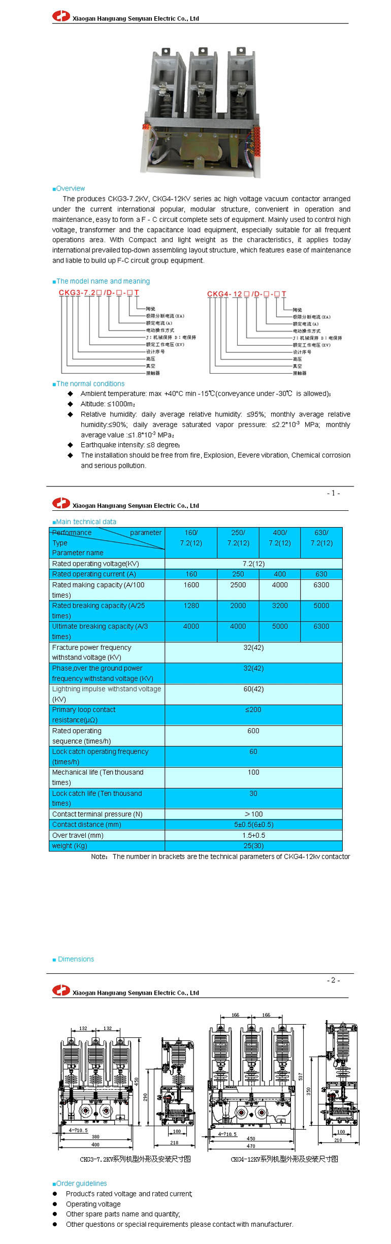 CKG□-7.2(12) ac high voltage vacuum contactor